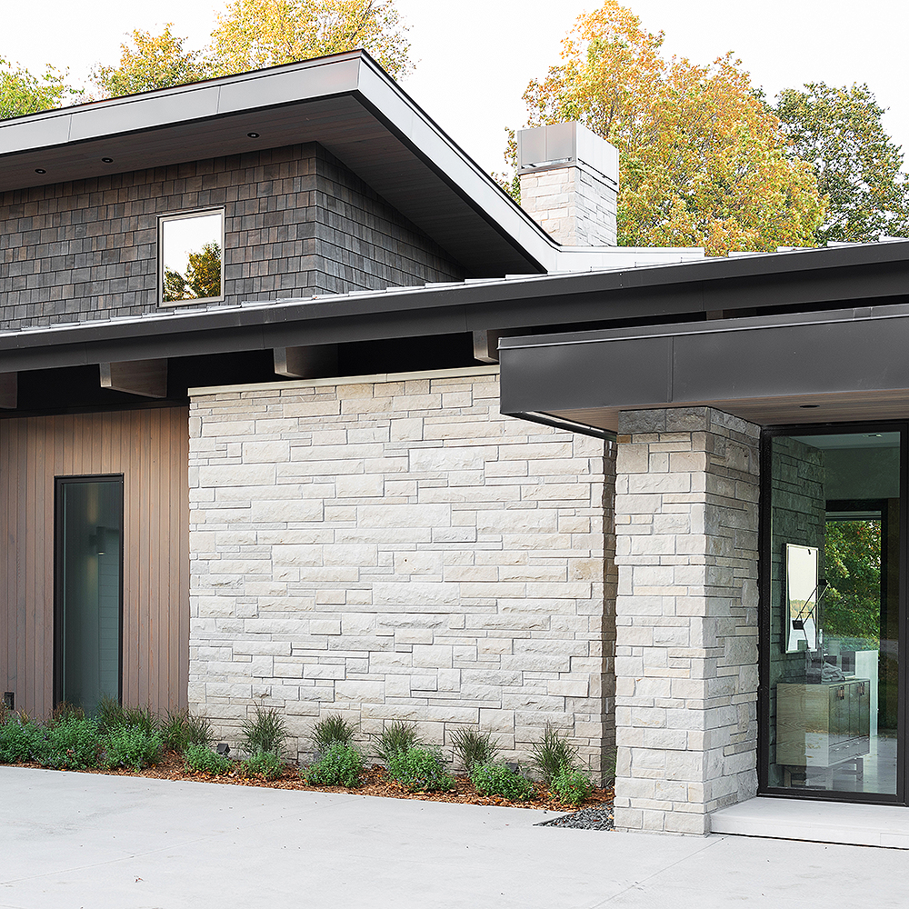 Our most popular limestone veneer presents the split face, showing off the clean light greige coloring of this classic neutral stone.Specifications